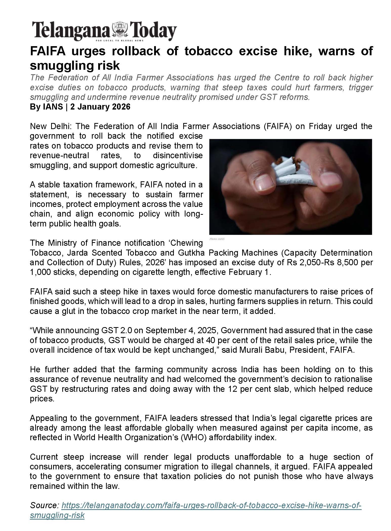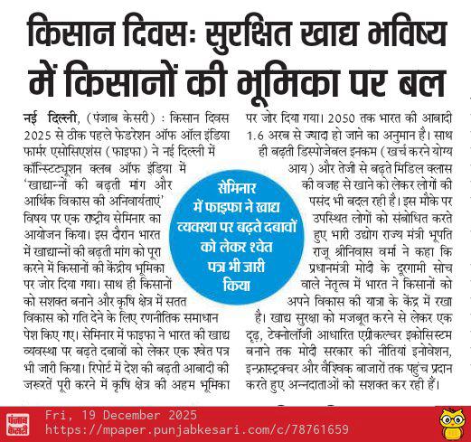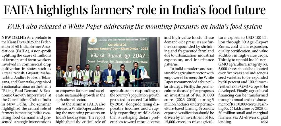 • FAIFA unveiled A White Paper on Transformation on India's Agriculture