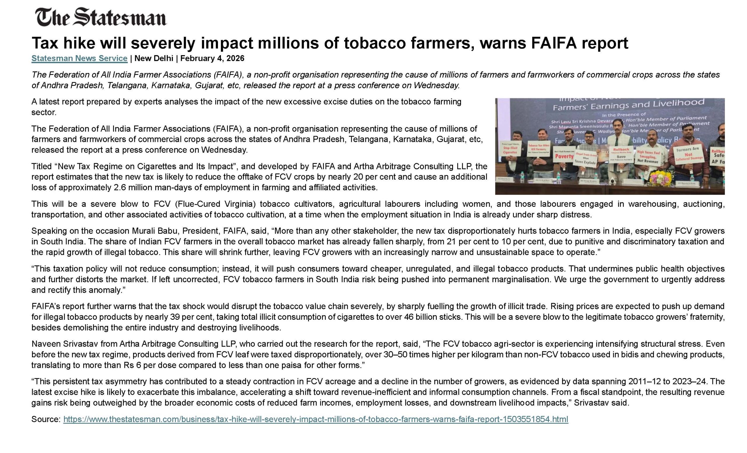 ![Tax hike will severely impact millions of tobacco farmers [The Statesman]_04022026 Tax hike will severely impact millions of tobacco farmers [The Statesman]_04022026](https://www.protectourlivelihood.in/wp-content/uploads/2026/02/Tax-hike-will-severely-impact-millions-of-tobacco-farmers-The-Statesman_04022026-scaled-250x200.jpg)